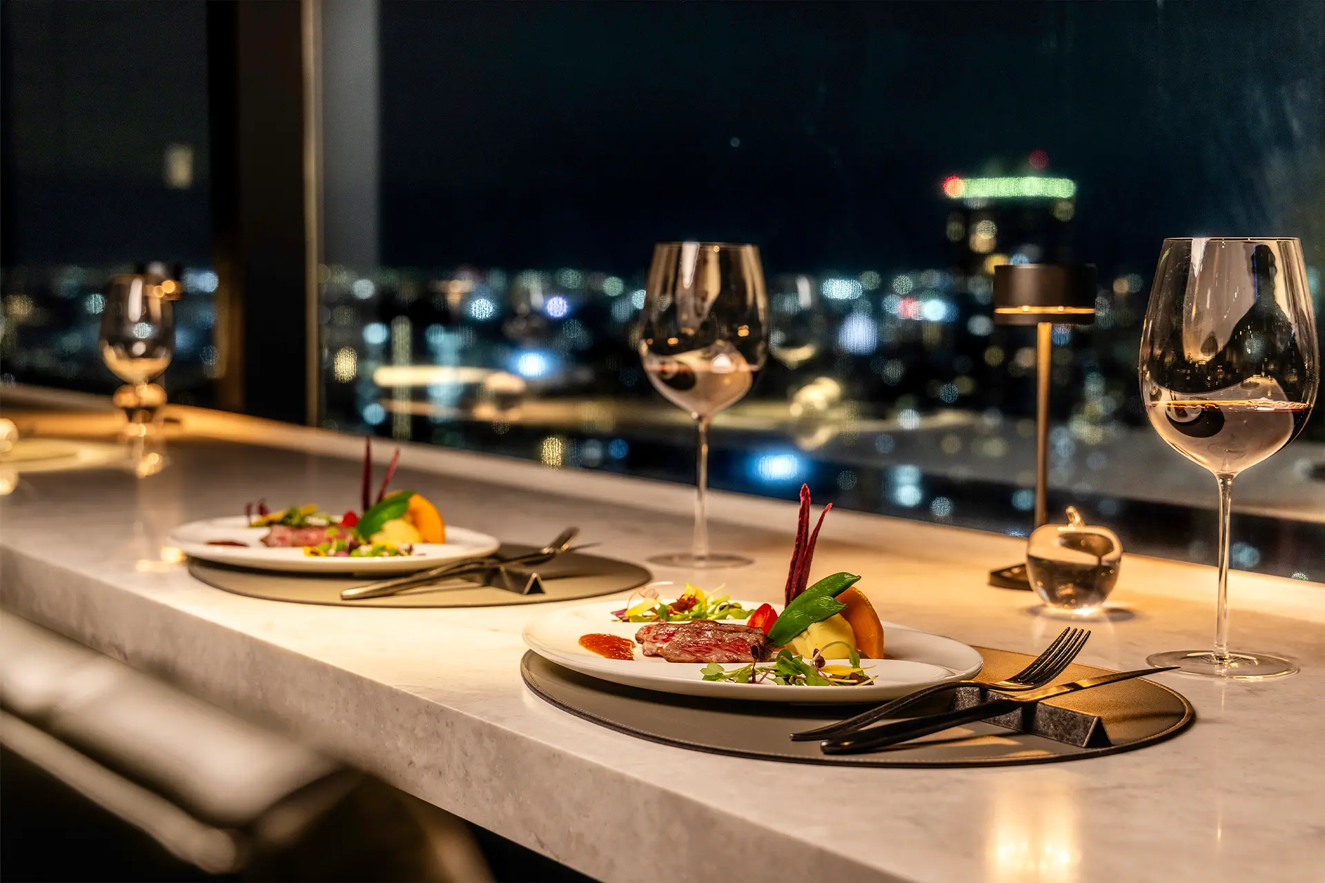 コンセプト HOME CONCEPT 夜景と融合した大人の空間で 心躍るひとときを・・・ ワインセラーを抜けると窓の向こうには煌びやかな夜景が織り成す光の演出五感を愉しむ特別な時間の始まり 日本の伝統的な食材 四季折々の素材を取り入れたモダンキュイジーヌシチュエーションに合わせて愉しめるソムリエが厳選したドリンクの数々ホスピタリティあふれる丁寧なおもてなし マンハッタンテーブルは非日常とリラックスの融合空間大切なひととの至福の時間を・・・ 開閉ボタン